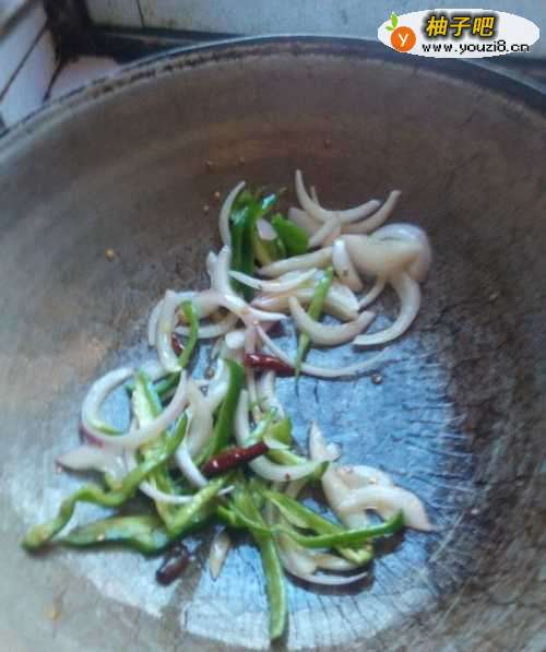 4放入洋葱 青椒 翻炒一下 加适量的水