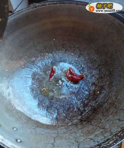 3锅内放油把干辣椒煸香