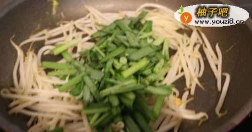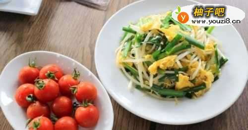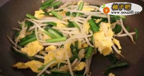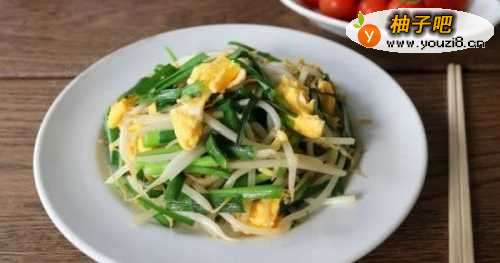 1.先把鸡蛋打散后,先把蛋炒到嫩嫩的先呈到盘子中。2.把豆芽菜下锅炒到去除生味。3.加上2大匙水把韭菜段下锅炒。4.把炒嫩蛋下锅,少许的盐巴调味,当作正餐或是早餐的一部分都很棒。5.简单的搭配水果就是清爽的一餐。