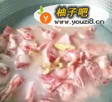 3排骨凉水上锅,加料酒和姜片焯水3分钟