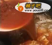 5等到鲳鱼两面都煎过以后,把豆瓣酱水倒入锅内。