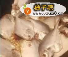 3把腌制好的鲳鱼一条线放在油锅里慢慢煎。