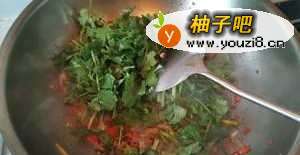 7香菜变软,发出诱人的香味,盛出装盘。