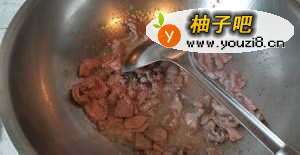 2热锅凉油,下牛肉迅速滑散。