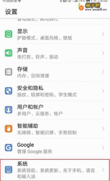 3向下滑动设置页面,点击“系统”按钮;