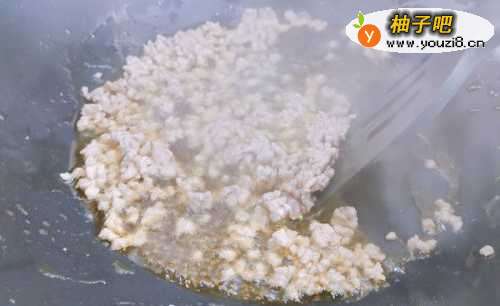 4把炒锅烧热,倒入菜籽油和牛油,加热融化后倒入牛肉粒,中小火滑炒至变色。