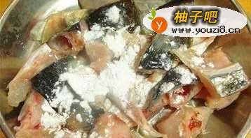 4腌制好的鱼头,捡出小料后,放干淀粉抓匀。
