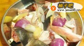 2用姜、葱头、盐、胡椒粉、料酒腌制30分钟。