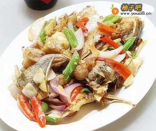 主厨物语:爆炒鱼头是一款不错的下酒小菜,注意要把鱼头切小块,鱼头要先腌制一下让其入味,然后再爆炒会更加好吃。