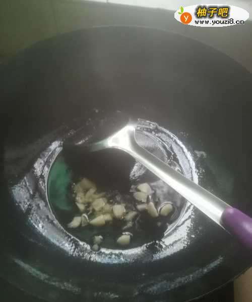 4蒜头爆香,然后放入娃娃菜,炒至娃娃菜变软