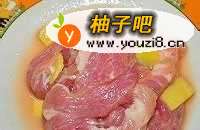 2猪肉洗净切片,放姜,料酒,少许盐,淀粉,抓匀腌制片刻