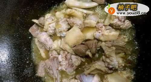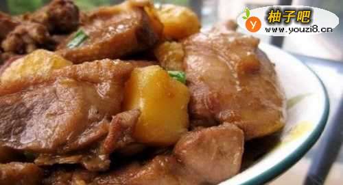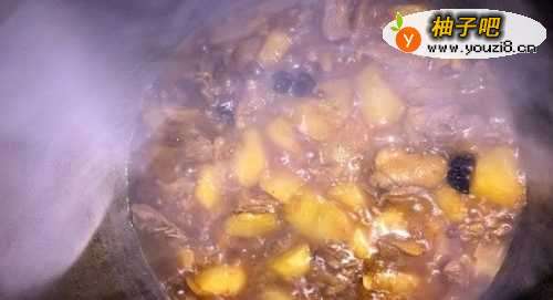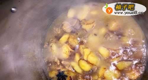 7鸭肉焖15分钟后,加入先前炸好的土豆块,混匀后加盖继续焖煮约5分钟。
