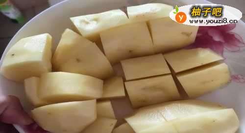 2土豆去皮洗净切成小块,用水浸泡备用。