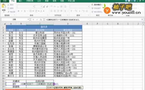 SEARCH主要用于查找对应字符串在指定区域中的位置;