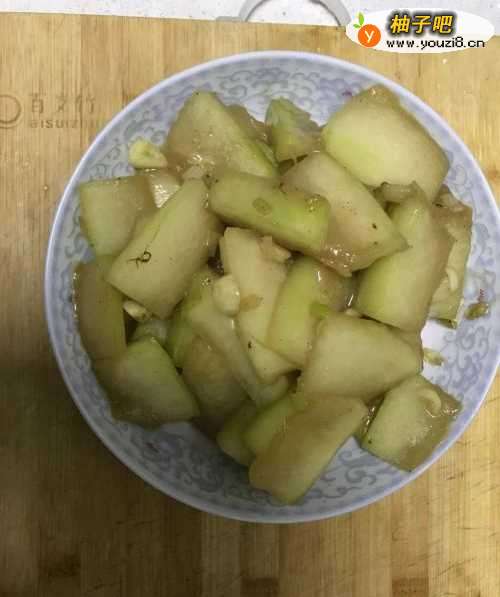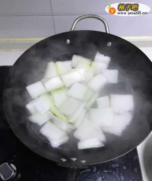 2切好的冬瓜在开水里焯1分钟,捞出备用。