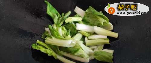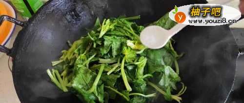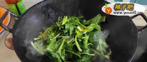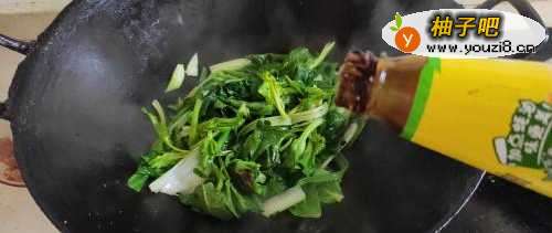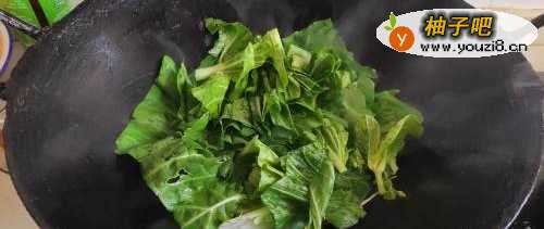 3放入菜苔叶子