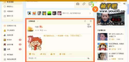 打开QQ空间,找到TA的动态,把鼠标移到TA名字上,这时就会出现这个人的资料名片。