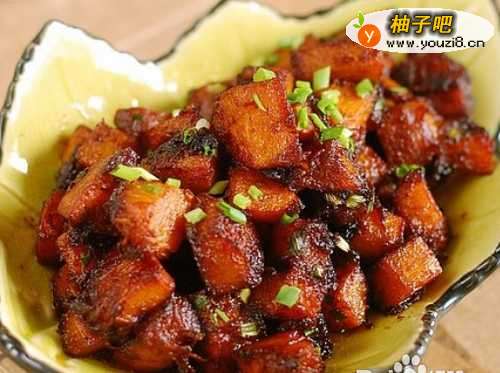 4倒入烧汁,大火收汁,并不停翻炒,使南瓜丁均匀裹上烧汁 出锅时多撒些葱花,香喷喷的干烧南瓜就做好了
