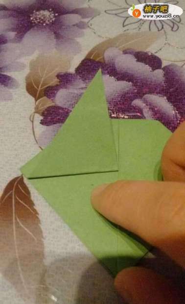 3反下来,一边角斜折一下,另一边也是一样。底部的角也向上折一次。