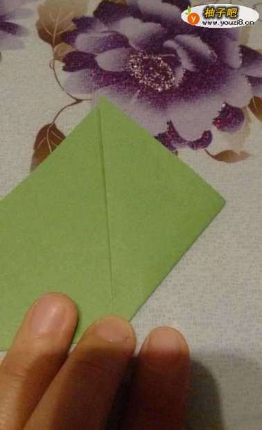4反过来,以中线为基准,向中间对折一下,顶部的两个小角各向内折一下。