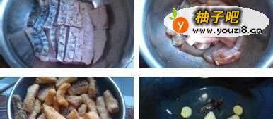 4.起油锅,把八角、桂皮、姜片放入煸香,注意是小火煸,大火容易把八角,桂皮炒糊了哦