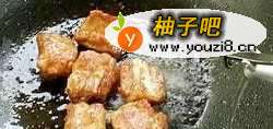 3将调好味汁的生排骨先在锅内煸炒一下,再将煸炒好的排骨盛入七成熟得米饭内,沿煲边淋入酱汁香油