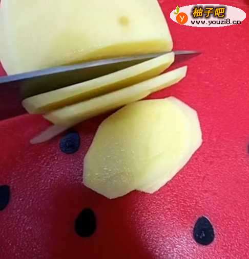 土豆切薄片,上锅蒸熟,取出来;