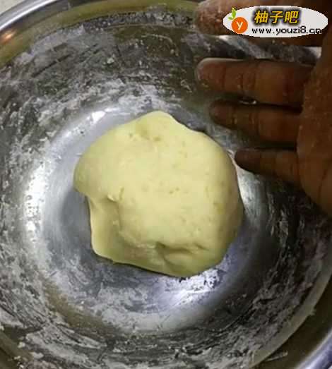 3加入面粉,揉成面团,干成面皮;