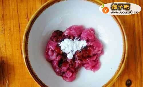 2:瘦肉切片,用料酒,酱油,生粉和食用油腌制10分钟。