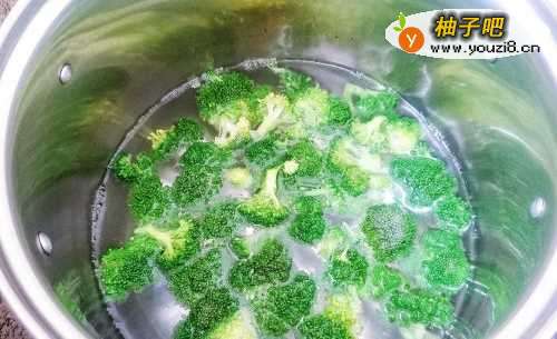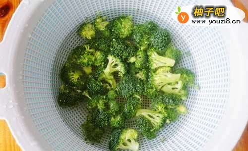 4:西兰花入热水焯一下,捞出沥干水份。