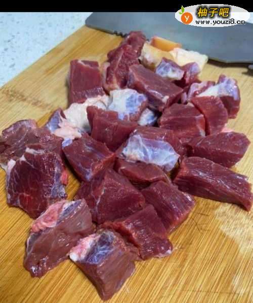 首先,牛腩洗净切成小块。