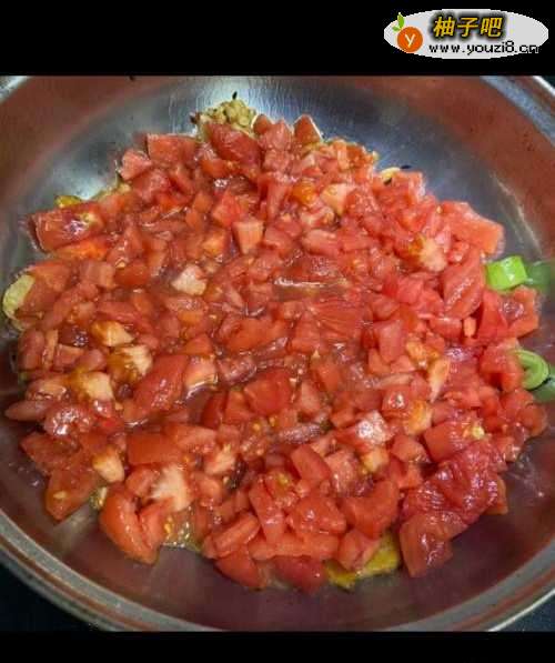 9倒入切好的番茄丁,煮出汁。