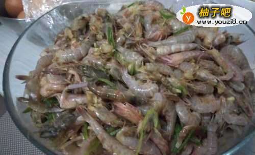 新鲜的小虾用清水洗干净,控干水分,加入五香粉,花椒粒,料酒,姜,盐搅拌一下,腌制20分钟。