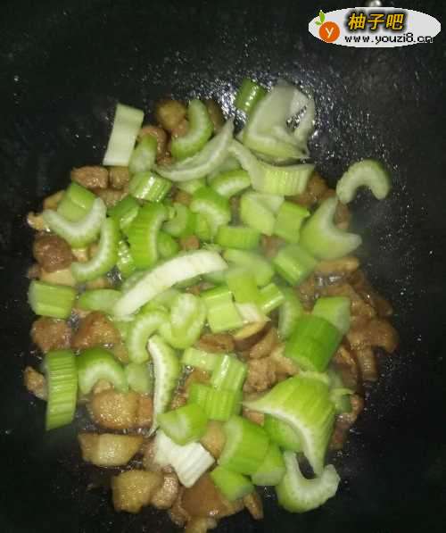 西芹五花肉炒油豆腐的做法