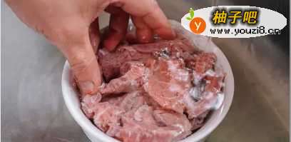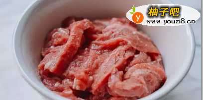 2牛肉洗净后,加入蛋清、盐、少许酱油、料酒、小苏打抓匀。要想肉嫩?我的窍门就是加入少许清水抓匀,然后可加入少许生油拌匀,有条件放入冰箱冷冻一会,可以防止一会脱浆。