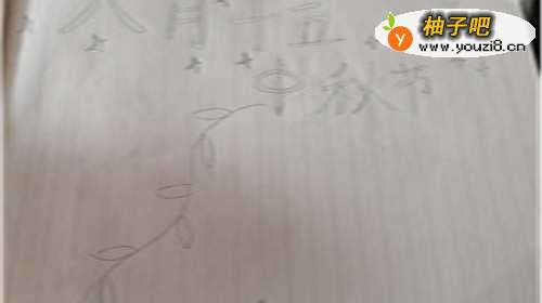 2首先我们先分两段来写上我们分标题,这里的标题可以不居中写。写好后我们来画一条由左下角延伸出来的藤蔓。