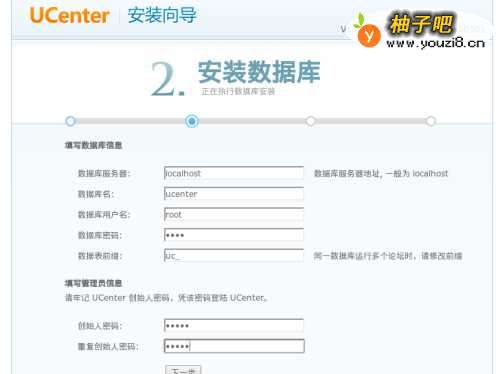 访问http://ci.connect.uc/discuz,按照向导,第二步时候选择只安装 Discuz!X,如下图,信息填写uc的安装信息
