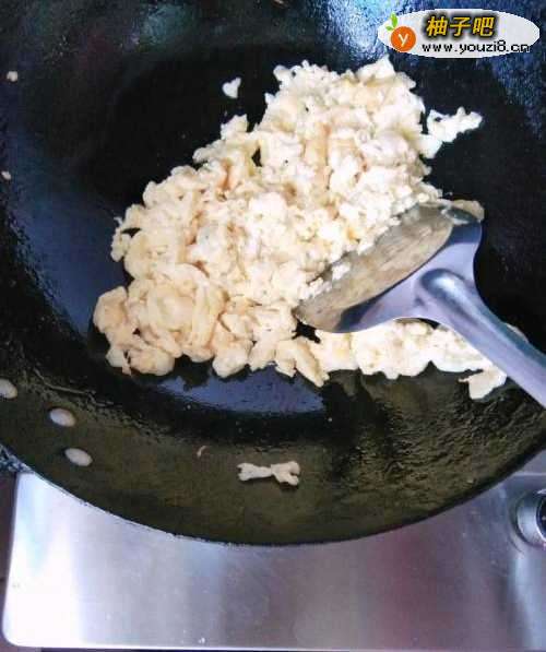 5鸡蛋液炒成蛋花,无需盛出
