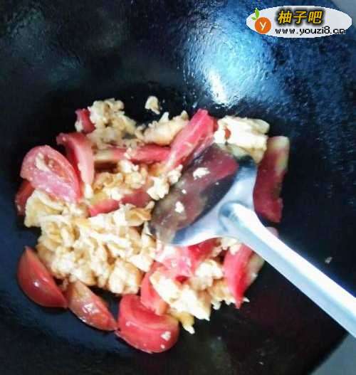 6加入西红柿翻炒,放适量盐,加入葱花