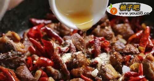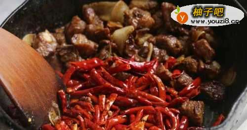 8干红辣椒与排骨混合一起翻炒。