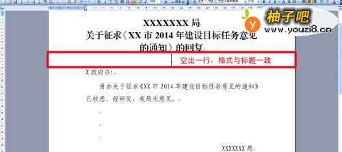首先是标题的写法:第一行写上自己单位的名称,转下一行写回复的文件名称