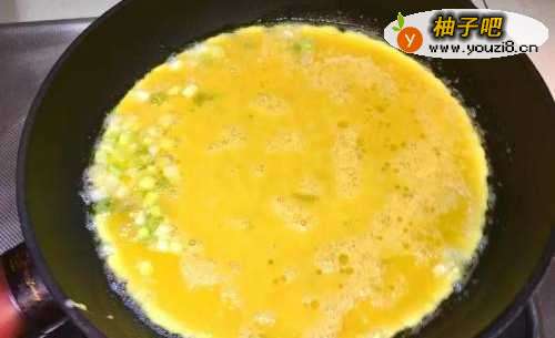 4奶油入锅放入葱白爆香后加入蛋液