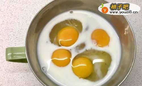 3鸡蛋加入牛奶搅拌均匀