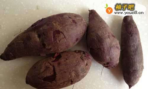 紫薯洗净蒸熟,晾凉后剥去紫薯皮。