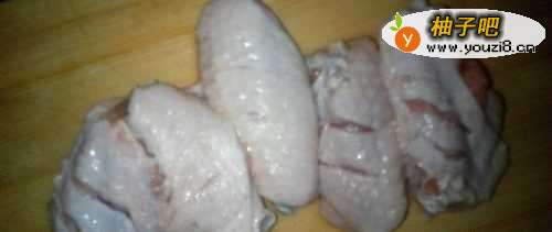 2用刀在鸡中翅俩面分别划俩刀