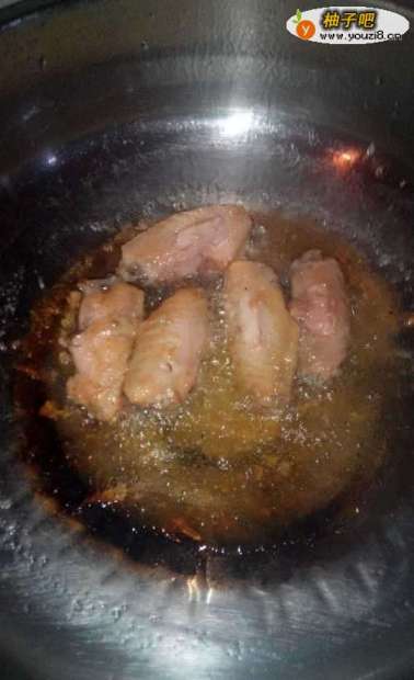 4待鸡中翅粘锅时再倒入食用油,