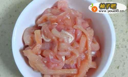 里脊肉切成丝备用。