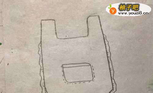 用铅笔在画纸上画出围裙的外形轮廓。