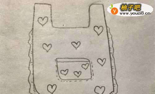4在围裙上面我们画上很多的爱心,规则大小不一,分布均匀~