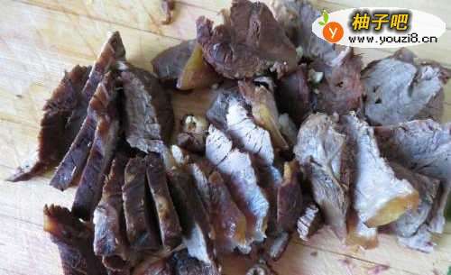 13与牛肉片一起放入盘中加醋拌匀即可开吃了